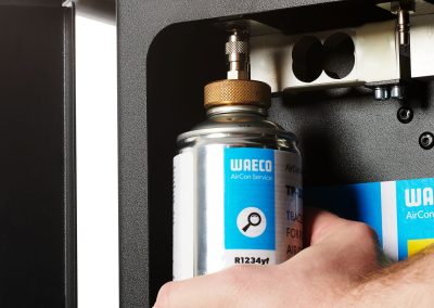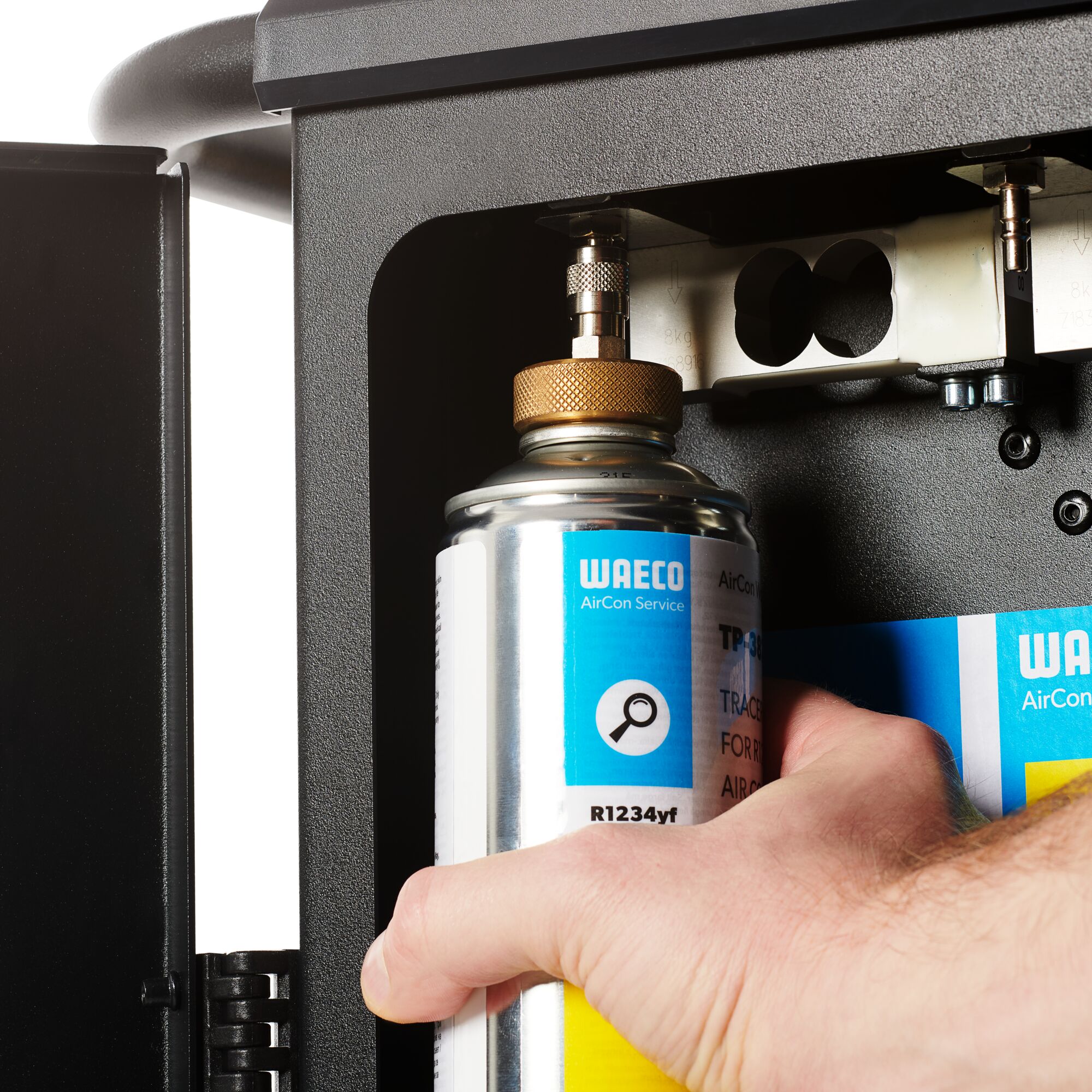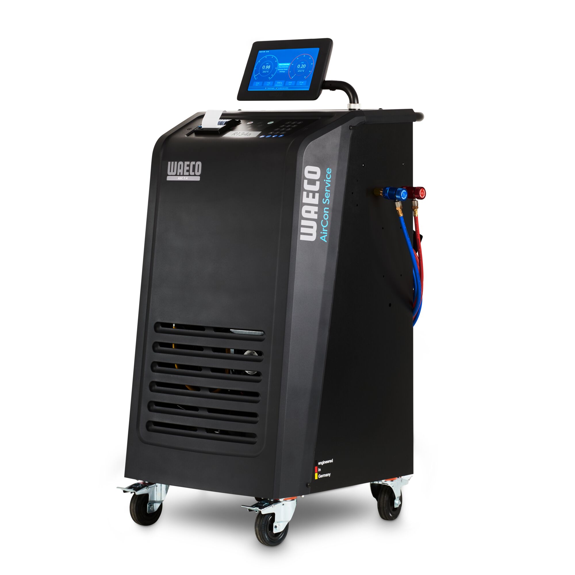 WAECO Low Emission technology for almost 100% refrigerant recovery and virtually no harmful service emissions. Modern design. Fully automatic service. This new generation air conditioning service unit is certified for use with four refrigerants. It can be equipped for service on R134a, R1234yf, R456A or R513A A/C systems. Simply order the hose kit for the application of your choice.