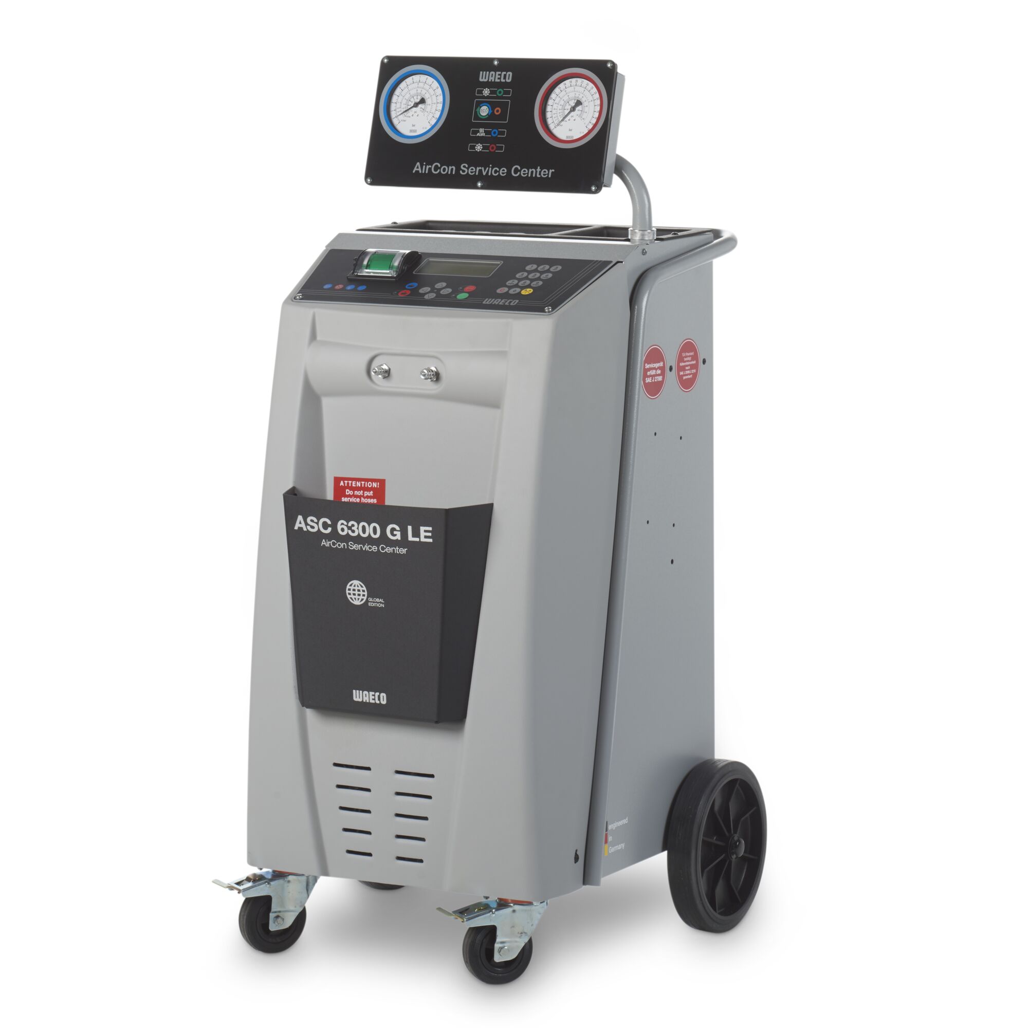 State-of-the-art, fully automatic triple certified A/C service unit. WAECO Low Emission technology for almost 100% refrigerant recovery and virtually no harmful service emissions. Prepared for the retrofitting of a gas analyser.